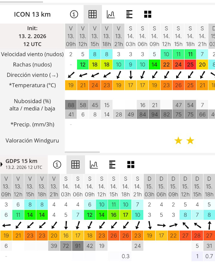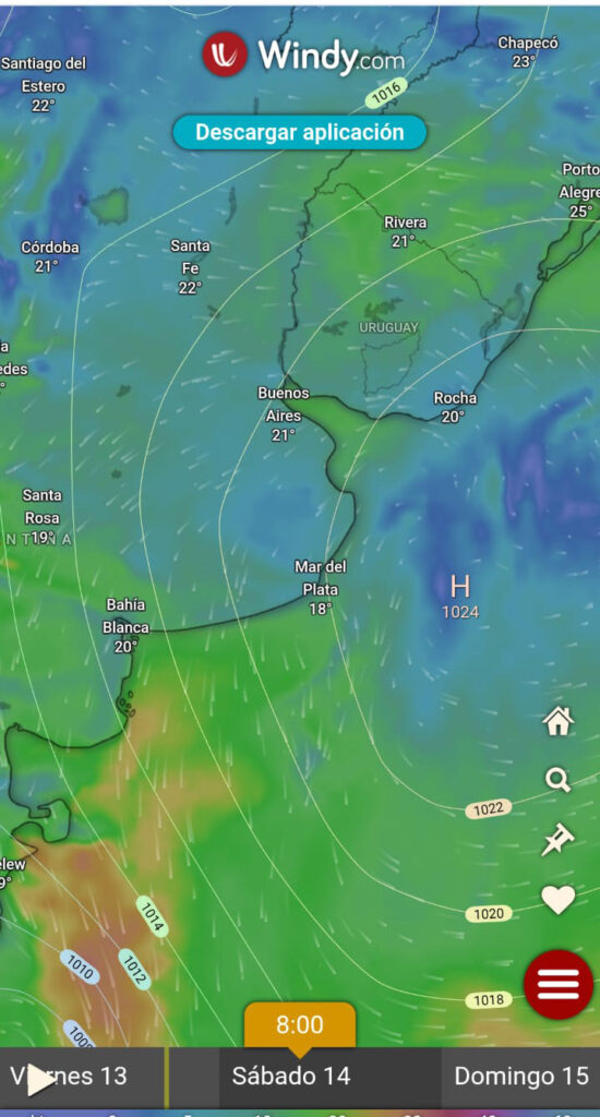 Recomendación: navegar por la mañana hasta las 13 hs. Los modelos de Windguru no lo marcan salvo uno que fija ráfagas de 24 nudos a las 15 hs. Y compartimos más abajo.